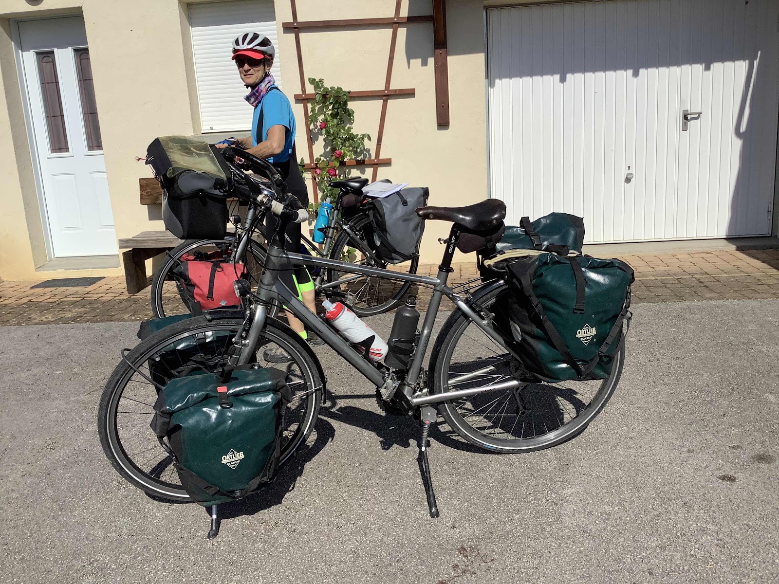 Retrouver nos vélos est toujours une joie. Le chargement bien équilibré et placé sous les porte-bagages abaisse le centre de gravité des vélos et leur donne une bonne stabilité. Leurs poids de 46 et 48 kg avec les bagages leur procure de l’inertie et une fois lancés ils roulent sans trop d’effort (sauf si cela grimpe). Nos dérailleurs sont très sollicités car nous ne forçons que modérément sur les pédales. Le but n’est pas l’exploit mais la randonnée et le lendemain, il faut repartir. Ces quelques mots mis en préambule permettront aux lecteurs de notre blog de comprendre que notre folie ou notre courage ne sont, somme toute, que très limités.